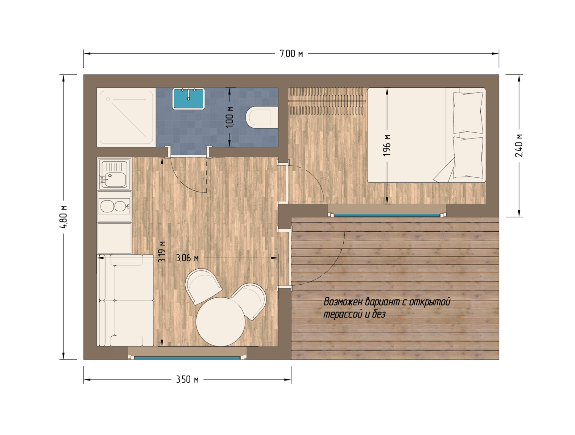 Размер общий 7х4.8 - 33. м2